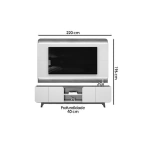 Dimensões(Cm): Comnto(Profundidade): 40cm x Largura: 220cm x Altura: 60cm Tipo de Acabamento - Detalhe Usinado Material de Estrutura - Estrutura em MDF/MDP Estilo do Móvel - Moderno Tipo de Pintura - UV Tipo de Acabamento da Pintura - Pintura Semi Brilho Tipo de Porta - Portas de Bater Quantidade de Portas - 4 Portas de Abrir Tipo de Dobradiças - Dobradiças Metálicas Quantidade de nichos - 2 Nichos Ideal para TVs até (Polegadas) - 75 Tipo dos Pés - Pés de Madeira Quantidade de Pés - Móvel possui 4 pés Recomendações de Uso - Instruções de Cuidado Montagem do Produto - Desmontável - Necessita de Montagem - Necessita de Ferramentas para Realizar a Montagem - Complexidade da Montagem Média Sistema de Montagem - Acompanha Manual de Instalação e Montagem Certificação de Qualidade - Qualidade Aprovada Nossa Avaliação - Qualidade Excelente Garantia - 3 meses