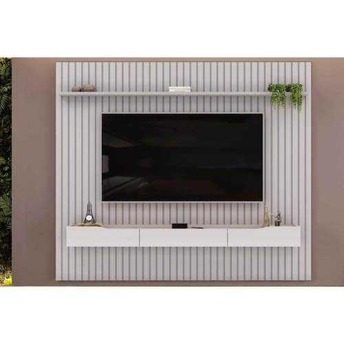 Rack Bancada c/ Painel p/ TV até 85 Pol Pratic Ripado 3 Gavetas 250x240cm Bali - DJ Móveis