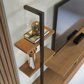 O Painel Maui é mais que um Painel para TV, é também item de decoração para sua Sala de Estar com design moderno, sofisticado e inovador. Inspirado nas recentes tendências nacionais e internacionais, combina o padrão do mármore Calacatta, o madeirado Real e o elemento em metal. Suporta Tv de até 55 Polegadas fixada no Painel e sua prateleira lateral é iluminada com LED para você expor a sua decoração favorita. O Painel Maragogi Possui nichos e prateleiras ideais para organizar seus aparelhos eletrônicos e demais objetos e um amplo espaço fechado com porta basculante com pistão a gás proporcionando deslizamento suave.