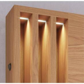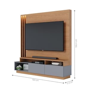 Com detalhes em ripado na lateral, três nichos internos e duas portas basculantes com pistão a gás, tornando ele perfeito para organização de aparelhos eletrônicos e objetos decorativos