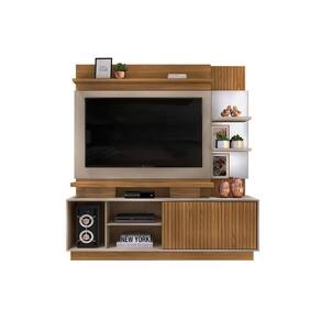 Home para TV Lupi até 55 Polegadas c/ 1 Porta de Correr e 3 Nichos Carvalho/Griz - DJ Móveis