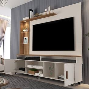 O Painel vem com 4 prateleiras de MDP para embelezar ainda mais o ambiente. Suporta Tvs de até 80 Polegadas.