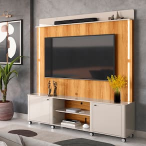 Feito em MDP. Possui 2 prateleiras, 2 portas e 8 pés em rodizíos facilitando o manuseio do produto.Tamanho de TV Suportado: Até 75"