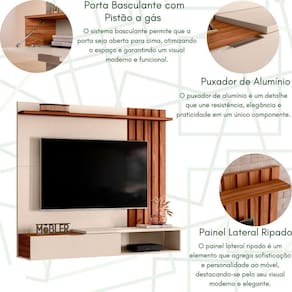 Home Rack Painel Suspenso 1.6 Vegas Sala Para Tv De 65 Polegadas Perola Metalizado Com Cinamomo Mel O Home Vegas é a escolha ideal para quem busca um móvel moderno, funcional e imponente para a sala de estar.Com design sofisticado e linhas contemporâneas, ele une beleza e praticidade em um só produto.Seu amplo painel comporta TVs de até 65 polegadas, garantindo uma experiência completa de entretenimento.O rack com portas e nichos abertos oferece excelente espaço para organizar eletrônicos, livros, decorações e acessórios, mantendo o ambiente sempre limpo e elegante.O acabamento em padrões amadeirados e tons neutros proporciona harmonia e requinte, combinando com qualquer estilo de decoração.Produzido 100% em MDF, o Home Vegas entrega resistência, durabilidade e um visual que impressiona em cada detalhe.Dimensões aproximadas:Altura: 138cmLargura: 160cmProfundidade: 31,2cmObservações:- Comporta TV de até 65?- Portas e nichos para eletrônicos e objetos decorativos- Estrutura 100% MDF- Acabamento UV de alta resistência- Design moderno e sofisticado- Ideal para salas amplas e elegantes- Fácil montagem com manual ilustrado Marca: Não Informado