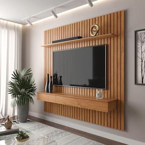 Home Ripado Antares Com Gavetas Para Tv Até 75 Polegadas Cinamomo Com design imponente e acabamento sofisticado, o Home Ripado Antares é ideal para transformar a sala de estar em um ambiente moderno e ível com TVs de até 75 polegadas, o modelo possui painel ripado que adiciona textura e um toque contemporâneo ao ambiente, destacando-se como peça principal da decoraçã estrutura conta com nichos abertos e portas com ótimo espaço interno, perfeitos para acomodar eletrônicos, objetos decorativos e manter tudo sempre tampo usinado reforça o cuidado nos detalhes, enquanto os pés em madeira proporcionam firmeza, durabilidade e um toque natural que valoriza ainda mais o móões:Altura: 180cmLargura: 184cmProfundidade: 36,5cmObservações:- Painel ripado com design moderno e sofisticado- Ideal para TVs de até 75 polegadas- Nichos abertos e portas com ótimo espaço interno- Tampo usinado com acabamento de alto padrão- Pés em madeira resistentes e visual elegante