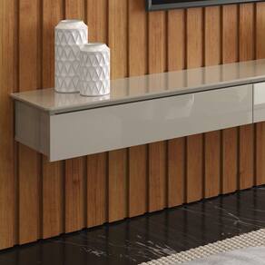 A estrutura conta com nichos abertos para eletrônicos e objetos decorativos, além de portas espaçosas que garantem organização e praticidade no dia a dia.