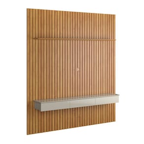 Compatível com TVs de até 85 polegadas, o painel ripado em mdf e mdp usinados, adicionando textura e um toque contemporâneo ao espaço.