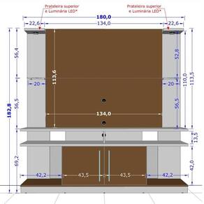 Marca: Moveis Bechara | Modelo: Home | Altura: 183 cm | Largura: 180 cm | Comnto: 38,5 cm | Altura Embalado: 20,5 | Largura Embalado: 60,5 | Comnto Embalado: 181,5 | Peso: 70,100 kg | Peso Embalado: 70,100 | Material: MDP | Precisa de montagem?: Sim, sugerimos a contratação do nosso de montagem (para os CEPs em que o está disponível) ou de algum experiente de sua preferência. | É kit: Não | Quantidade de gavetas: 0 | Quantidade de portas: 2 | Material da estrutura: MDP | Material dos pés: Não se aplica | Material das alças: Aluminio | Com rodas: Não se aplica | Tamanho máximo de : 60 Polegadas | Formato do móvel: Retangular | Material das gavetas: MDP | Quantidade de prateleiras: 3 | Condição do item: | Estilo: Classico | Com portas: Sim | Profundidade: 38,5 | Com compartimento para alto-falantes: Não | Inclui manual de montagem: Sim | Material das portas: MDP | Inclui passa-cabos: Sim | Fonte do produto: DoceLar | Código ANVISA (32481): Não se aplica | Código da Homologação ANATEL (32495): Não se aplica | Código INMETRO (32486): Não se aplica | Código MAPA (32485): Não se aplica | Quantidade de caixas de embalagem: 2 | Baterias são necessárias?: Não se aplica | Principais características 0: Com iluminação em LED | Principais características 1: Feito em MDP | Principais características 2: Com prateleiras de Vidro | Certificação de teste externa: Nao se aplica | Componentes incluídos: Home | Dimensões do item P x L x A: 38,5 cm x 180 cm x 183 cm | do modelo: 1 | Quantidade de itens: 1 | da peça: 1 | País de Origem: | Peso Suportado: Até 90 kg | is fragile: Não | Estado de origem: | Descrição do tamanho: 180 cm x 183 cm x 38,5 cm | Garantia em meses: 03 meses de garantia para de fabricação. Cor: /Off White/Ro