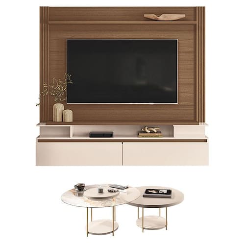 Home Suspenso Astor Castanho Off White com Kit Mesa de Centro Sky Off White - HB Móveis