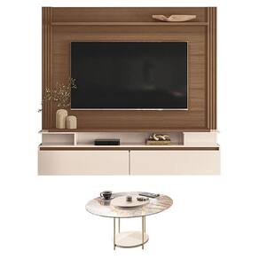 Home Suspenso Astor Castanho Off White com Mesa de Centro Sky com tampo de Vidro Off White - HB Móveis