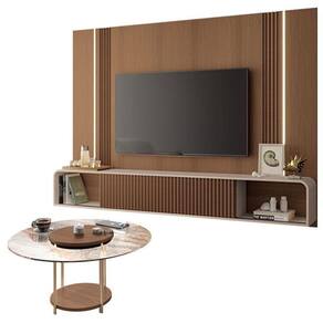 Home Suspenso Castanho Off White e Mesa de Centro Sky com Tampo de Vidro Castanho- HB Móveis