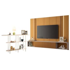 Home Suspenso Cinamomo Off White e Aparador Infinity e Mesa de Centro Sky com Tampo de Vidro Off White- HB Móveis
