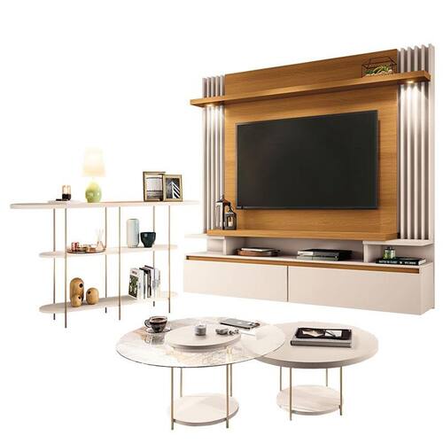 Home Suspenso Cosmo Cinamomo Off White e Aparador Infinity e Kit Mesa de Centro Sky Off White- HB Móveis