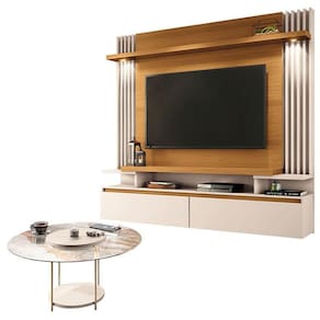 Home Suspenso Cosmo Cinamomo Off White e Mesa de Centro Sky com Tampo de Vidro Off White- HB Móveis
