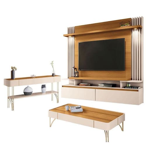 Home Suspenso Cosmo e Aparador Vivant e Mesa de Centro Cadenza Cinamomo Off White - HB Móveis