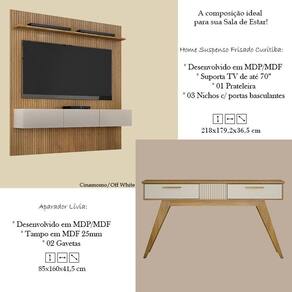 Home Suspenso Frisado Curitiba 180 e Aparador Lívia Cinamomo Off White - Valdemóveis