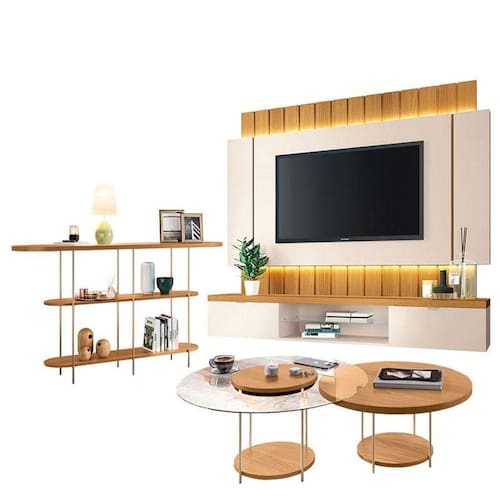 Home Suspenso Illusion Cinamomo Off White e Aparador Infinity e Kit Mesa de Centro Sky Cinamomo- HB Móveis