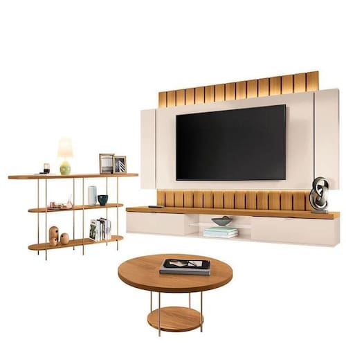 Home Suspenso Illusion Cinamomo Off White e Aparador infinity e Mesa de Centro Sky Cinamomo- HB Móveis