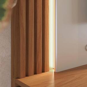 Transforme seu ambiente com o Home Suspenso Loa. Com painéis ripados que acrescentam sofisticação, ele conta com luz de Led em ambos os lados, proporcionando aconchego e elegância. Seu tampo com detalhes chanfrados destaca seu design exclusivo, enquanto as portas deslizantes oferecem praticidade. O Home Suspenso Loa é a perfeita combinação de praticidade e elegância.