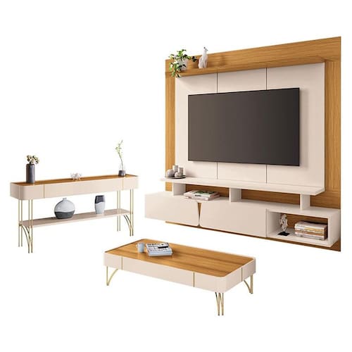 Home Suspenso Zenith Off White Cinamomo com Mesa de Centro Cadenza e Aparador Vivant Off White Cinamomo - HB Móveis