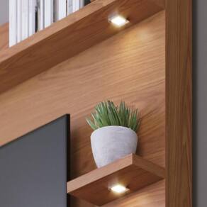 Uma ótima opção para clientes que buscam por um móvel espaçoso e cheio de personalidade, o Home Theater Campeche possui um design clean e moderno. Com um painel para TVs de até 70, possui prateleiras superiores iluminadas por spots de LED, que trazem a sensação de tranquilidade e aconchego ao ambiente. Além disso, possui nichos internos e uma gaveta com corrediças telescópicas que são ideais para organização de aparelhos eletrônicos e demais objetos decorativos. Seu destaque fica por conta de sua porta deslizante ripada com brises que dão um toque especial do estilo contemporâneo ao móvel.