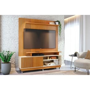 Com tampo e prateleira superior chanfrados, suporta até 65 kg e oferece entrada para TVs de 1,600m x 1,030m x 0,275m. O sistema de montagem Girofix facilita a instalação, combinando praticidade e sofisticação para sua sala.