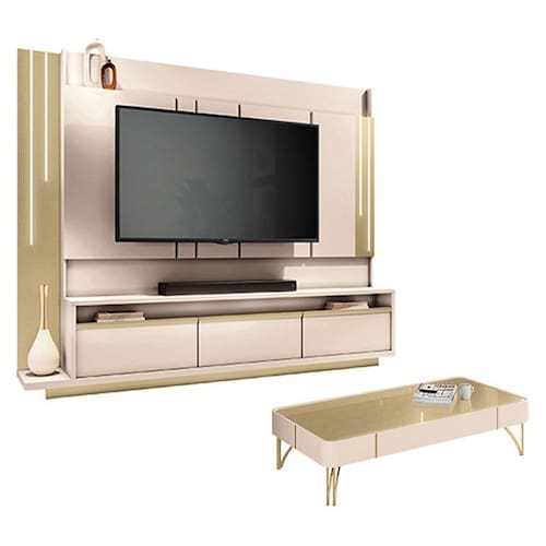 Home Theater Montane Off White Champanhe com Mesa de Centro Cadenza Off White Champanhe - HB Móveis