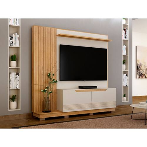 Home Theater Orlando 2,0 Off White/Cinamomo Se você procura por Home para a sala de estar com alta qualidade e sofisticação, você encontra isso no Home Theater Orlando. Ainda mais seu visual design moderno e unico, que irá proporcionar muita comodidade na hora de acomodar sua TV e objetos, tornando os momentos em família ainda mais especial. Não deixe de aproveitar! MEDIDAS: Altura: 1.96mLargura: 2.00mProfundidade: 43cm CARACTERÍSTICAS: Painel Ripado em MDF; Fita de LED Opcional para Prateleira; Acompanha Suporte de TV; Porta Bascular com dobradiças de pressão; * As imagens dos produtos são meramente ilustrativas. As cores podem sofrer variações dependendo da luminosidade, tipo de câmera ou mesmo da visualização das imagens em computadores, notebooks com telas LCD ou LED, tablets ou smartphones, dependendo da quantidade de pixels, podendo deixar as imagens com cores mais opacas ou cores mais vibrantes.* Montagem não inclusa.