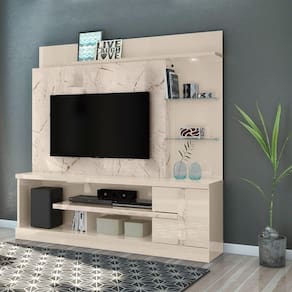 Home Theater Para De 55 Polegadas C/ 2 Prateleiras De Vidro E Led Aline Calacata/off White
