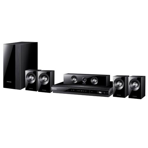 Com visual moderno e elegante, o Home Theater Samsung HT-D5100K/ZD possui 1.000 W RMS de potência e subwoofer.
