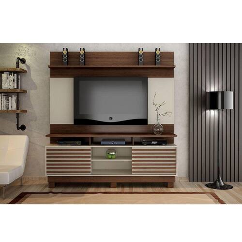 Características: Home Theater Marca: Valdemóveis Modelo: Texas Acomoda Tvs LCD e LED de até 60 Polegadas Espaço para equipamentos eletrônicos Material: MDP/MDF 15mm 25mm Tipo de Acabamento: Pintura UV Quantidade de Pés: 06 Material dos Pés: Plástico Quantidade de Prateleiras: 02 Quantidade de Nichos: 05