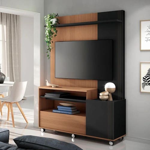 Home Theater Timber para sala de estar Tv até 50 polegadas com rodízios 190,5x136x40 - HB Moveis