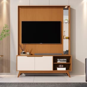 Ideal para TVs de até 60, oferece prateleiras em vidro, portas com puxadores embutidos e iluminação em LED para realçar sua decoração.