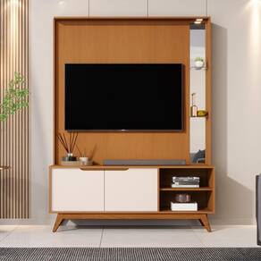Ideal para TVs de até 60, oferece prateleiras em vidro, portas com puxadores embutidos e iluminação em LED para realçar sua decoração.