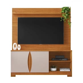 Detalhe ripado Portas usinadas com dobradiças de pressão Pés em ABS Nicho para eletrônicos Espaço TV: 1365mmx990mm(LxA) Acompanha suporte de TV OPCIONAL MONTAGEM SEM OS PÉS