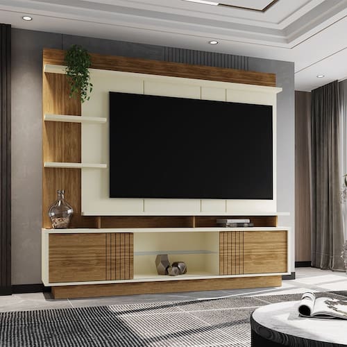 Características: Estrutura em MDP Pintura UV 02 Portas de correr em MDF frisada 01 Prateleira de vidro Painel chanfrado Possui prateleiras com amplo espaço Ideal para TVs de até 65 polegadas Suporta até 50kg