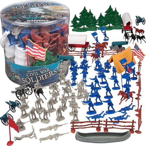 Homens do Exército da Guerra Civil Toy Soldier Action Figures - 100+ Peças, 24 Esculturas Únicas - Inclui Soldados, Cavalos, Canhões, Terreno e Mais: Traga para casa essa incrível variedade de bonecos de ação da Guerra Civil. Com mais de 100 peças ao todo, e 24 esculturas únicas, este conjunto é perfeito para projetos de classe, amas, aulas de história ou outras atividades educativas! Inclui uma caixa de transporte conveniente para garantir que todos os seus soldados de brinquedo fiquem em um só lugar! Recriar a história com este conjunto fantástico