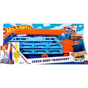 Prepare-se para a maior aventura sobre rodas! O Hot Wheels City Speed Drop Transport Hauler não é apenas um caminhão de transporte comum; ele se transforma em uma incrível pista de descida vertical com mais de 60 cm de altura. É a combinação perfeita de armazenamento, transporte e adrenalina! Transformação Incrível: De um robusto caminhão cegonha para uma pista de corrida vertical em segundos. Basta puxar a trava traseira para revelar uma rampa de descida em alta velocidade. Capacidade de Armazenamento: O caminhão consegue carregar e transportar mais de 20 carrinhos Hot Wheels (escala 1:64), ajudando a manter a coleção organizada e pronta para a ação. Ação de Salto: A pista termina em um salto emocionante, permitindo que as crianças testem a velocidade e a performance de seus carrinhos favoritos. Conectividade: Como faz parte do sistema Hot Wheels City, ele pode ser conectado a outras pistas e conjuntos da marca para expandir o mundo de diversão. Especificações: Marca: Mattel Modelo: Hot Wheels City Speed Drop Transport Hauler HDY92 Cor: Variado Material: Plástico Idade Mínima Recomendada: 4 anos Partes articuláveis: Sim Partes que se soltam: Não Usa pilhas: Não Dimensões da embalagem: 49 X 26 X 10 cm