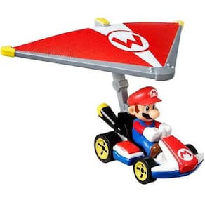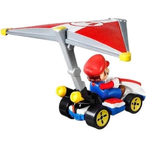 As crianças podem escolher seus personagens favoritos de Mario Kart e acelerar para corridas e acrobacias loucas com um veículo Hot Wheels fundido em escala 1:64 com um planador, assim como nos videogames!
