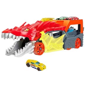 O Hot Wheels City Reboque de Dragão oferece o calor com recursos super legais que as crianças vão adorar. Em vez de disparar chamas pela boca, este dragão estiloso atira em veículos Hot Wheels®! As crianças carregam três carros nele e, em seguida, acionam o lançador para enviar veículos em alta velocidade para diferentes aventuras. Os conectores de esteira na frente e na traseira da fera permitem que as crianças prendam a esteira Hot Wheels, adicionando a uma construção existente ou para iniciar uma nova.Características:O Reboque de Dragão Wheels vem com um (1) carro Hot Wheels em escala de 1:64 e comporta até mais cinco carrinhos (vendidos separadamente) Ean: 887961916386