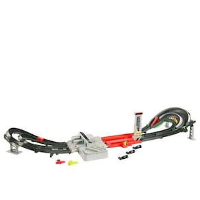 ocê pode recriar a emoção das corridas do Grande Prêmio de Fórmula 1 com este conjunto de pista da Hot Wheels. No modo de corrida, o contador de voltas acompanha os carros enquanto eles passam pelo acelerador de três pistas e aceleram em curvas dinâmicas e mudanças de elevação, exatamente como nas ruas da cidade real. As crianças podem acionar o desvio interativo DRS que permite que os veículos ultrapassem o líder em uma curva, o vencedor será o primeiro a chegar ao portão de chegada. No modo infinito, corra continuamente com os três carros F1 die-cast incluídos, ajustando manualmente os desviadores para aumentar a competição.