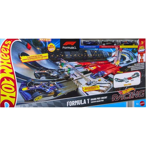 Descrição do produto :  Você pode recriar a emoção das corridas do Grande Prêmio de Fórmula 1® com este conjunto de pista da Hot Wheels. No modo de corrida, o contador de voltas acompanha os carros enquanto eles passam pelo acelerador de três pistas e aceleram em curvas dinâmicas e mudanças de elevação, exatamente como nas ruas da cidade real. As crianças podem acionar o desvio interativo DRS que permite que os veículos ultrapassem o líder em uma curva - o vencedor será o primeiro a chegar ao portão de chegada. No modo infinito, corra continuamente com os três carros F1® die-cast incluídos, ajustando manualmente os desviadores para aumentar a competição. As pistas apresentam pontos de conexão Pista de Corridas Speed Snap para estender a corrida com mais pistas e conjuntos. (Pistas e conjuntos Hot Wheels adicionais são vendidos separadamente.) As cores e as decorações podem variar. :