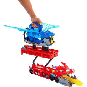 Você pode dirigir para a batalha com este caminhão Hot Wheels City Supertrailer de dragão em grande escala que apresenta um dragão adicional destacável que devora veículos de brinquedo!