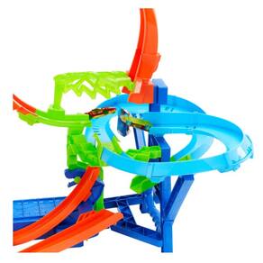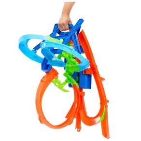 Corra, faça acrobacias e bata com este conjunto de pista Hot Wheels que inclui um lançador motorizado e é dobrável para facilitar o armazenamento. Coloque o carrinho Hot Wheels incluído e ele imediatamente dispara em um salto acrobático e loop, seguido por outro salto e curvas antes de repetir tudo. Vire o desviador para correr para outros desafios. Aumente a emoção adicionando mais carrinhos na escala 1:64 para ver quanto tempo dura antes de uma colisão no ar.