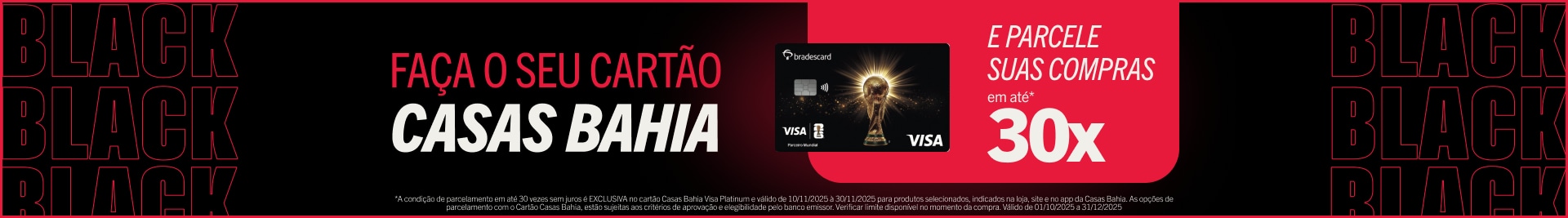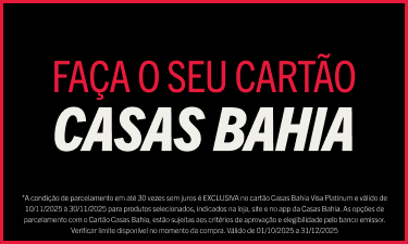 *Sujeito à aprovação e elegibilidade. Condição de 30 vezes exclusiva para o Cartão Casas Bahia em produtos selecionados. A taxa de juros varia de acordo com o número de parcelas (consulte a tabela).