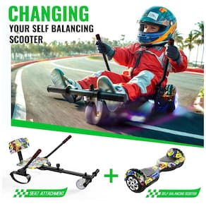 Transforme o hoverboard em um kart seguro e divertido. O assento expansível proporciona maior agilidade e conforto, com comprimento ajustável de 72 cm a 85 cm, ideal para crianças e adultos.