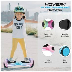 CONDUÇÃO FÁCIL DE HOVERBOARD PARA CRIANÇAS Os motores duplos de 150 W do meu primeiro Hoverboard impulsionam no a uma velocidade máxima segura de 8 km, h e permitem que o hoverboard suba inclinações de até 5 graus. O sistema de estabilização dinâmica por inércia manterá a prancha equilibrada enquanto seu filho se inclina para frente e para trás para montá la. Os pés antiderrapantes proporcionam bastante aderência. ILUMINE SEU CAMINHO Os faróis duplos de LED brilhantes iluminam o caminho à frente e tornam a condução ainda mais divertida para as crianças. BATERIA DE LONGA DURAÇÃO My First Hoverboard possui uma bateria recarregável de íon de lítio de 24V, 2Ah integrada que carrega totalmente em 5 horas. Ande até 4 km com carga total. LEVAMOS A SEGURANÇA A SÉRIO Meu primeiro Hoverboard tem certificação UL2272, o que significa que foi testado de acordo com os padrões aplicáveis e considerado por uma organização terceirizada Marca: Não Informado