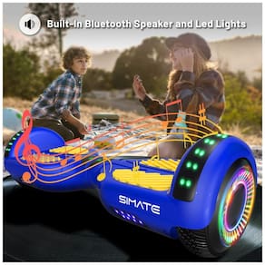 Hoverboard SIMATE Azul Amarelo All Terrain com Bluetooth, Luzes de LED e Controle por Aplicativo – Crianças e Adultos