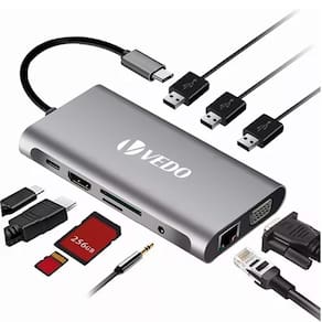 Hub adaptador 10 em 1: conectividade e versatilidade em um só dispositivo transferência rápida de dados: expanda sua velocidade de transferênciadesfrute de taxas de transferência de dados ultrarrápidas de até 5 gbps em todas as portas usb. Com essa velocidade, é possível transferir um filme em hd em questão de segundos. A porta gigabit ethernet suporta velocidades de rede de 10/100/1000 mbps, proporcionando uma experiência de internet tranquila. Além disso, as portas sd e tf suportam velocidades de transferência de dados de até 150 mbps, permitindo a leitura simultânea de cartões sd e tf. Extensão incrível: desfrute de vídeos em tela grandeaproveite a comodidade de assistir a filmes e vídeos em uma tela maior. Com a saída hdmi e vga do adaptador hub usb-c vedo, é possível desfrutar de vídeo 4k a 30 hz ou 1080p. Espelhe ou estenda sua tela para uma tv, monitor ou projetor e desfrute de uma experiência cinematográfica sem restrições de espaço. Carregamento rápido: energia sempre disponívelcom a porta de carregamento de 60 w, você pode alimentar seu computador, macbook pro ou outros dispositivos tipo c enquanto realiza transferências de dados. Equipado com chips avançados de núcleo duplo, o adaptador oferece excelente dissipação de calor e operação eficiente, garantindo proteção dupla para você e para o dispositivo. Com o hub adaptador 10 em 1, sua conectividade é ampliada e suas tarefas são simplificadas. Aqui, na eletrônica santana dados técnicos: Especificações - compatível com laptops meeste com interface tipo c - smartphones compatíveis com interface tipo c e função otg - interface 10 em 1: - 1 4k 3840 x 2160 / 30hz hd mi - 1 Vga - 1 Gigabit ethernet lan rj45 banda de reprodução de 10/100/1000mbps - 3 Usb 3.0 overdach de dados de alta velocidade, flash disk/muis/toetsenbord enzovoort - 1 Porta tipo c. - 1 Slot para cartão sd - 1 Slot para cartão tf - 1 Conector de áudio de 3,5 mm Compatibilidades - produto compatível com notebook, tablets, smartphones ou qualquer equipamento que possua entrada usb-c thunderbolt 3 ou usb c 3.2 gen 2. Homologação Anatel: 126732213457 Marca: Não Informado