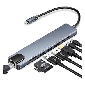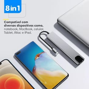 Adaptador USB Multifuncional Type C 8x1 Hdmi 4k, Lan, Usb 3.0, Leitor SD para Macbook